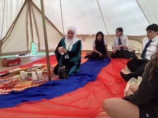 This year is the first year that Year 7 have had the opportunity to learn Arabic; the six-week course was concluded with an Arabic tent activity. The Year 7 students got to experience a beautiful Arabic-designed tent, and they also learnt colours in Arabic and tried mint tea and Arabic biscuits . The tent was so popular that some Year 8 students popped in for some mint tea at lunch time. Lubna Nassr, our Arabic teacher, has successfully completed our first Arabic taster that we will be repeating next year.